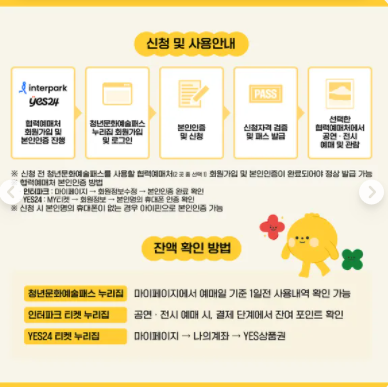 청년문화예술패스 포인트는 뮤지컬, 클래식, 콘서트 등의 공연과 전시 예매에 사용 가능하며 또 국립중앙극장 등 국립문화예술기관과 인천광역시 등 9개 지방자치단체와 공립 문화예술기관은 '청년 문화예술패스' 이용자를 대상으로 관람권 할인 서비스도 제공합니다.