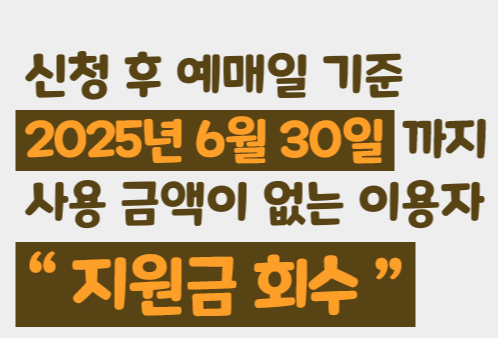 ★신청 후 예매일 기준 2025년 6월 30일까지 사용 금액이 없는 이용자는 지원금이 회수되니 주의하세요!