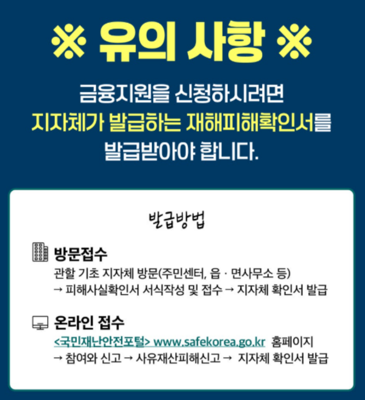 신청 기한 준수: 재난 발생 후 일정 기간 내에 신청해야 하므로, 지자체의 공지사항을 확인하여 기한을 놓치지 않도록 합니다.