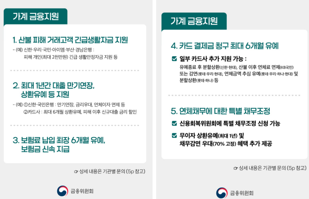 이러한 지원을 통해 산불 피해를 입은 주민과 사업체의 조속한 일상 회복과 경제적 안정을 도모하고자 합니다.