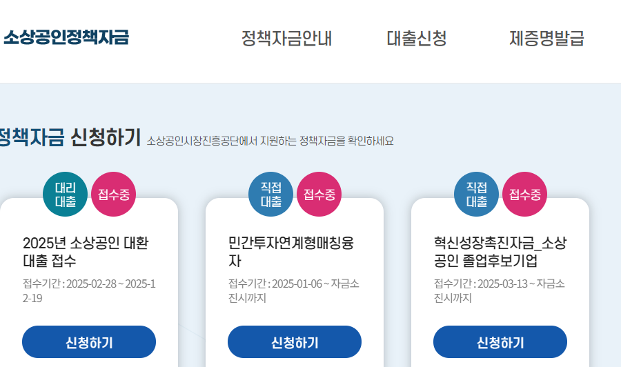 ☝소상공인 정책자금 홈페이지에서 정책자금을 한눈에 보실 수 있습니다. ☝