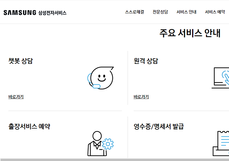 자가 점검 후 이상이 발견되면 삼성전자서비스를 통해 방문 점검을 신청하면 됩니다.