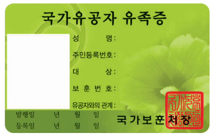국가유공자 유족증은 국가유공자의 법적 유족임을 증명하는 공식 신분증입니다.