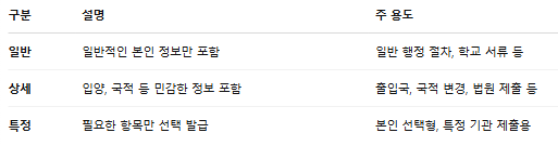 📄 기본증명서 종류