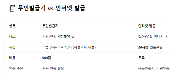 🧾 무인발급기 vs 인터넷 발급