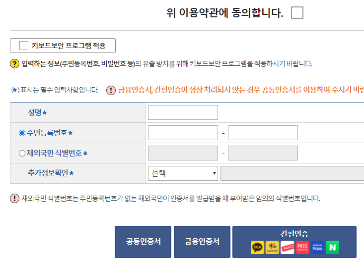 다만, 공동인증서(구 공인인증서) 또는 간편 인증 수단이 필요합니다.