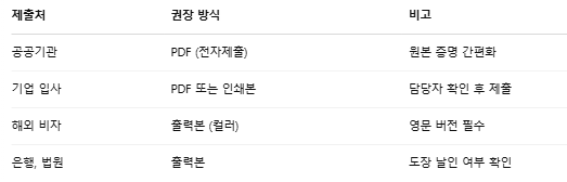 💡 최근에는 전자문서 제출 허용이 늘고 있어, PDF 파일을 이메일이나 웹상으로 제출해도 문제가 없는 경우가 많습니다.