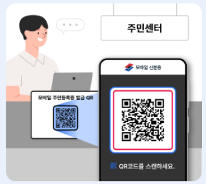 기존의 플라스틱 주민등록증을 주민센터에 가지고 가서 모바일 신분증 앱으로 QR을 스캔하는 방식입니다.
