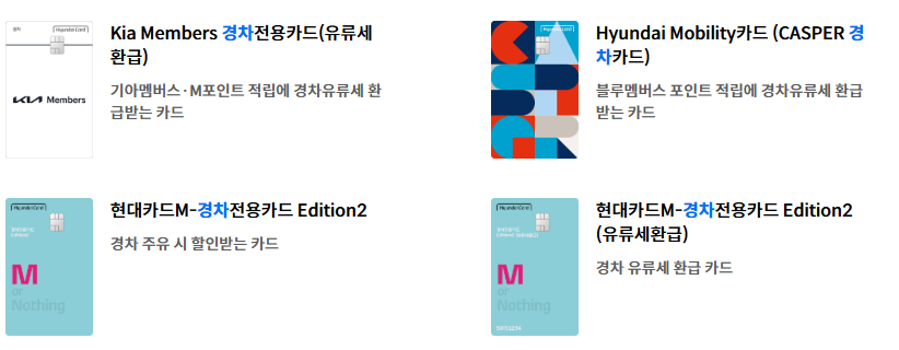 현재 경차사랑카드는 다음 3개 카드사에서 발급이 가능합니다.
