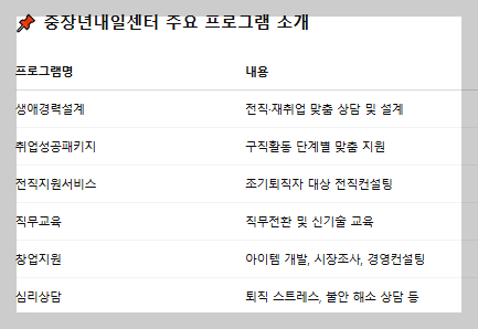 ✅ 전체 센터 정보는 고용노동부 누리집 또는 워크넷 중장년센터 검색에서 확인 가능해요.
