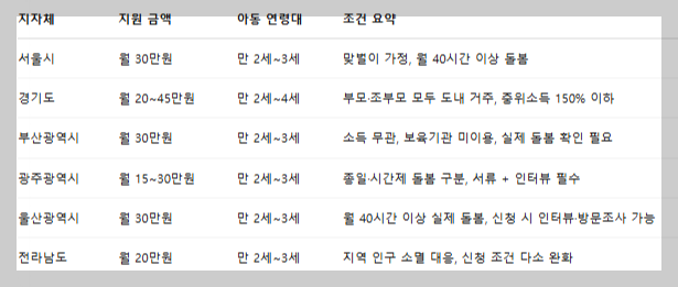 💰 지자체별 조부모 돌봄수당 지원 내용 비교
