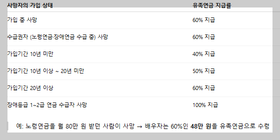 ✅ 기본적으로 사망자가 받을 수 있었던 연금액의 일정 비율을 기준으로 계산됩니다.